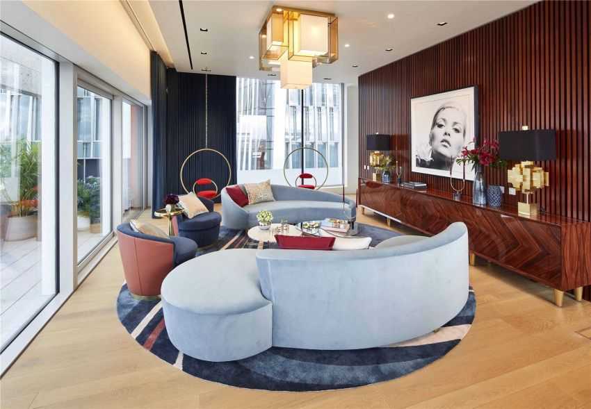 В этом интерьере царствует абсолютно холодный синий цвет.