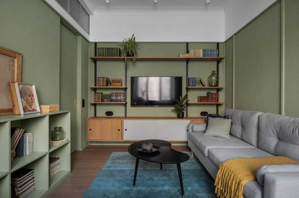 Одним из популярных при оформлении комнат решением являются оттенки оливкового цвета.