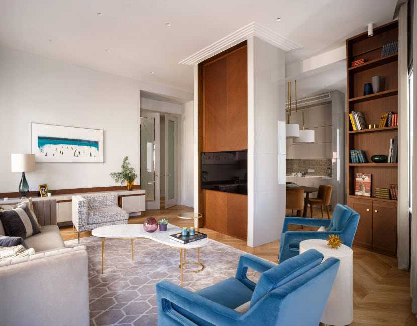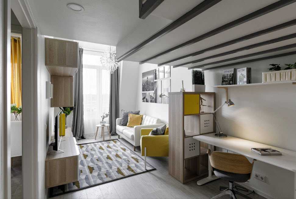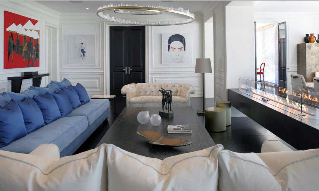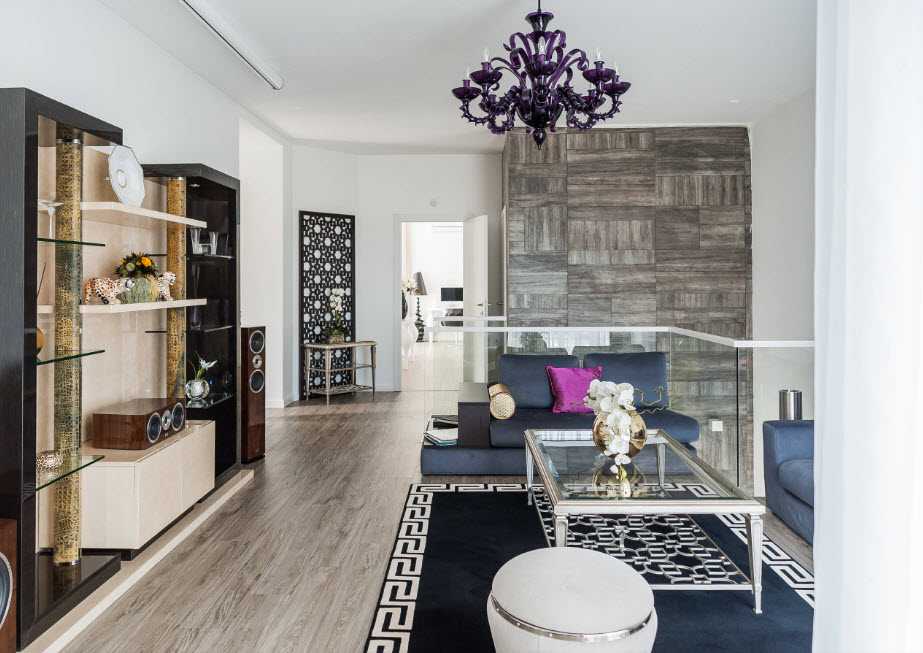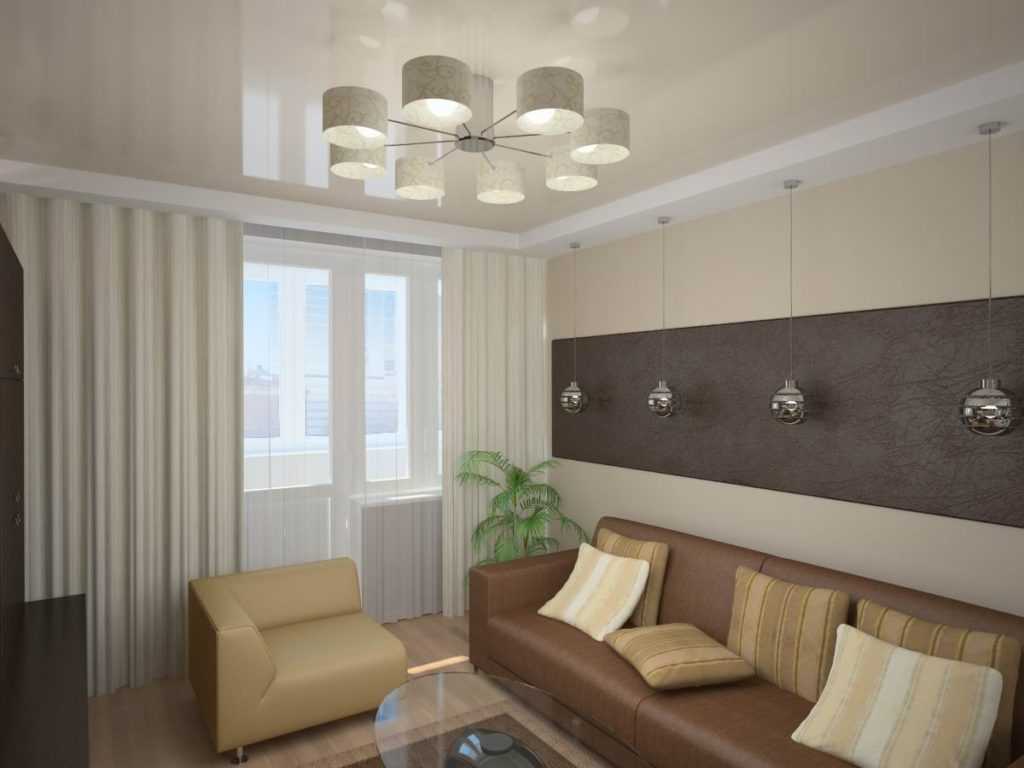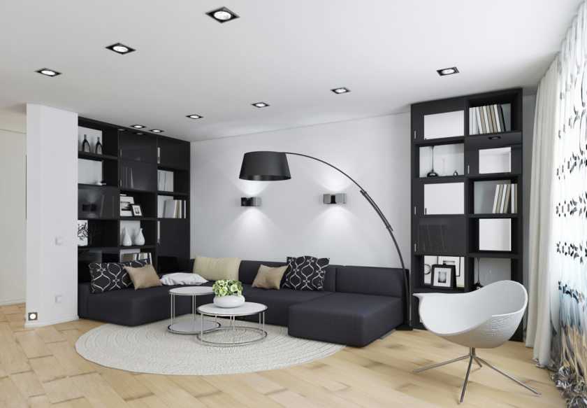 - Длинная прямоугольная гостиная – две потолочные лампы, расположенные в разных частях комнаты.