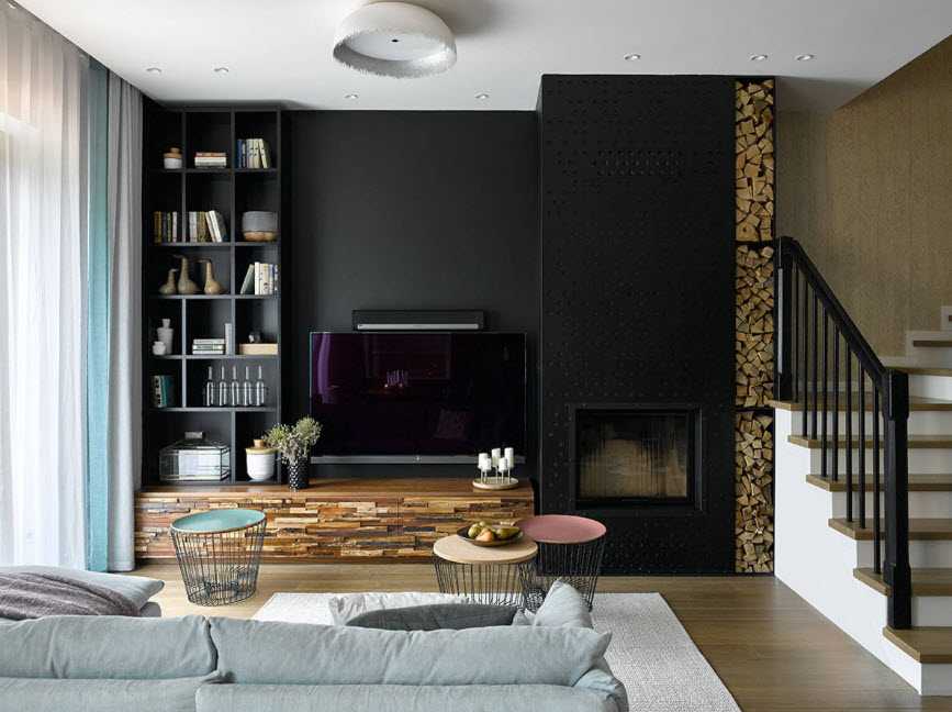 Особенно эффектно такой метод смотрится на фото. Для освещения гостиной используются светодиодные осветительные приборы, а также лампы разной высоты.