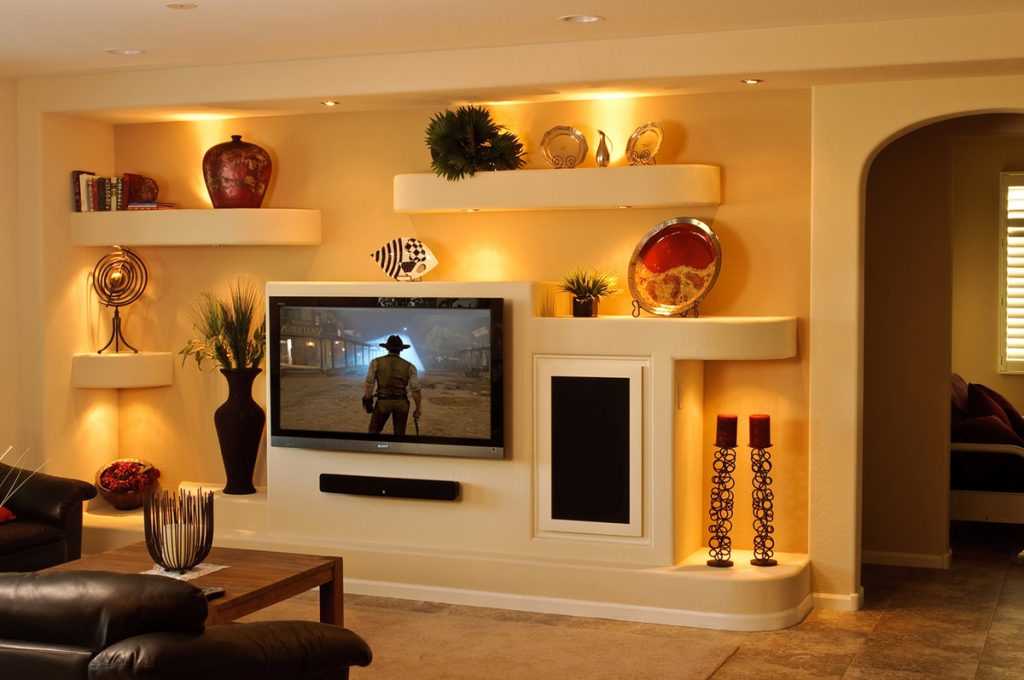 При выборе декоративных элементов освещения необходимо учесть все особенности планировки комнаты. Выигрышно смотрятся светильники, расположенные в различных нишах, над аквариумом, картиной, статуэткой, вазой или кирпичной кладкой.