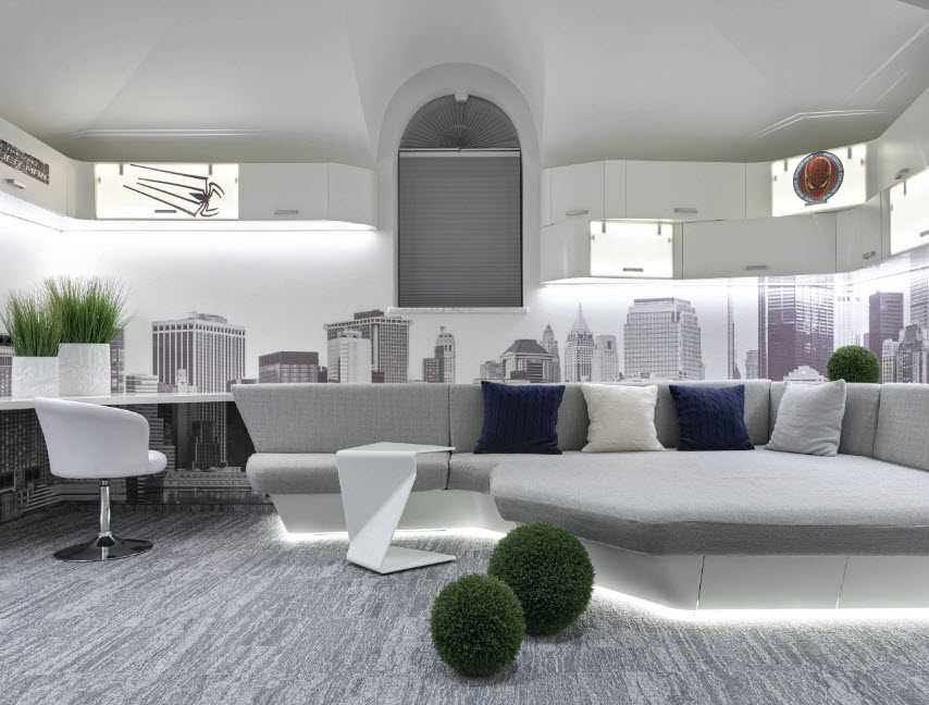 В таких целях можно использовать и разноцветную подсветку, что поможет сделать помещение более уникальным. Кроме того, задать настроение комнате поможет пузырьковые панели с подсветкой. Они отлично смотрятся в больших комнатах, где нужно разделить помещение на несколько зон.