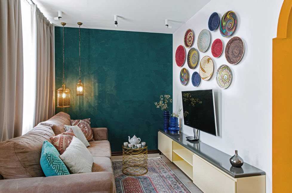 - Стены не должны оставаться “голыми”. На них необходимо повесить полки, картины или любой другой декор. В противном случае будет создаваться эффект пустого нежилого помещения.
