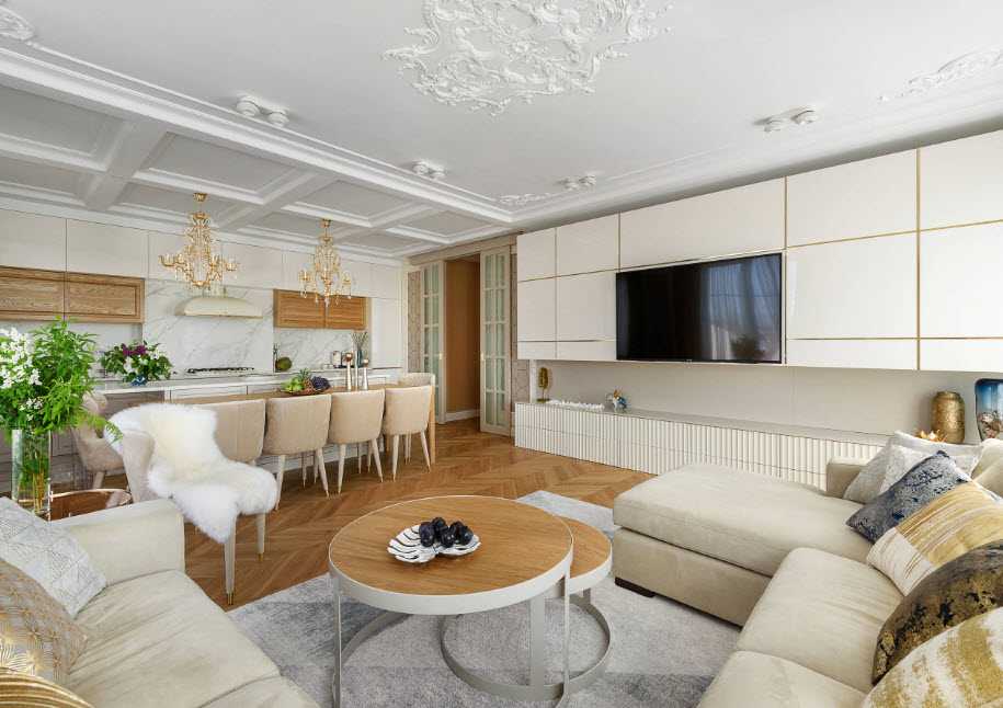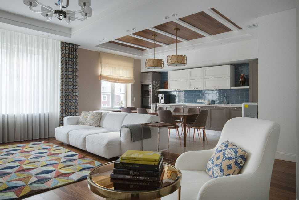Для основного освещения кухни-гостиной также используют:
