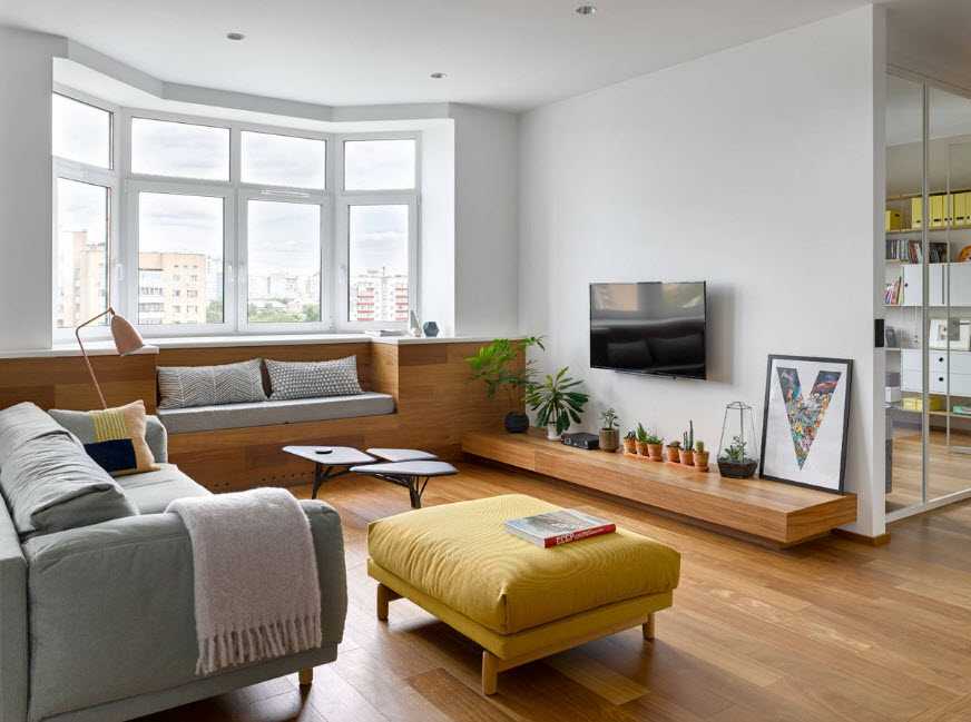 Использовать галогенные софиты можно под мебелью или в районе плинтусов. Таким образом, вы предадите всем предметам в гостиной эффект левитации, что делает помещение визуально больше и просторнее. Однако не переусердствуйте, чтобы гостиная не стала выглядеть вычурно и негармонично. Помните, всего должно быть в меру, 2-3 источников света будет достаточно. В противном случае вы рискуете сделать помещение чрезмерно ярким, от чего ваш глаз будет быстро уставать.