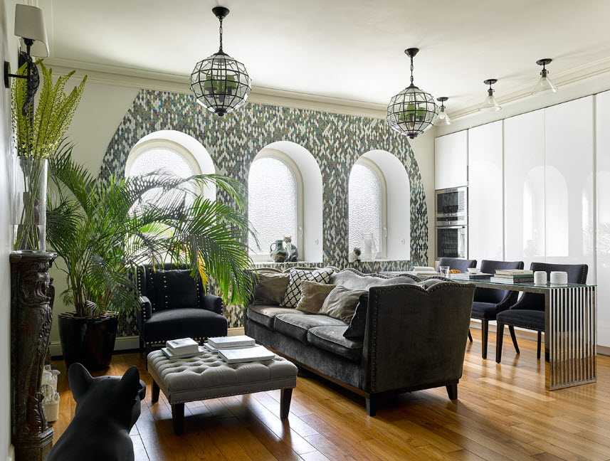 Декоративное освещение используется для временного освещения определенной зоны в гостиной. Оно не имеет практического значения, вряд ли решит проблему с нехваткой света. С помощью декоративных источников освещения вы сможете сделать акцент на определенном предмете или же зрительно увеличить площадь комнаты.
