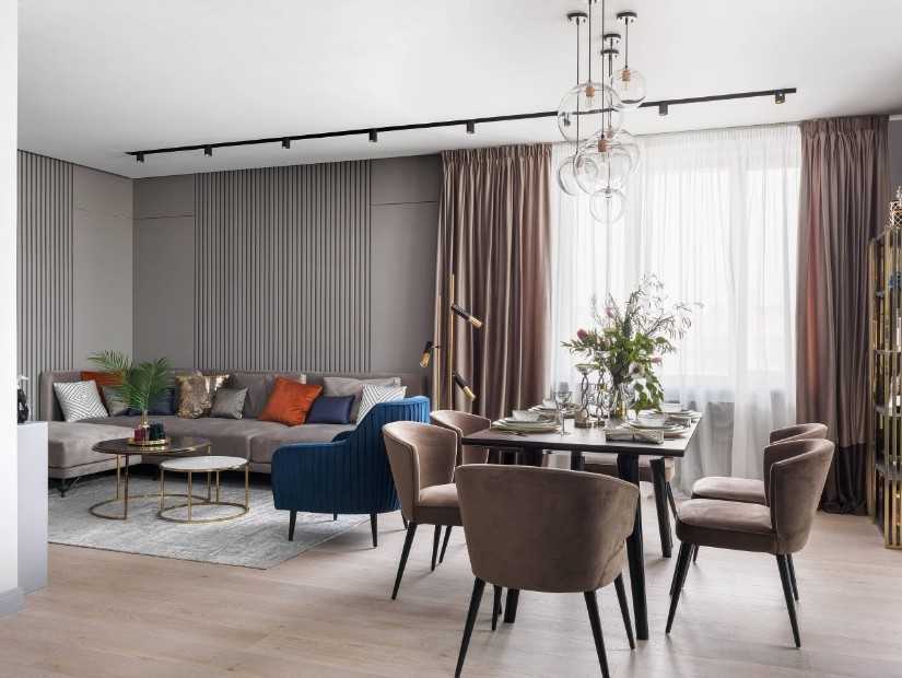 Гостиную с серым диваном можно встретить практически в любом стиле: