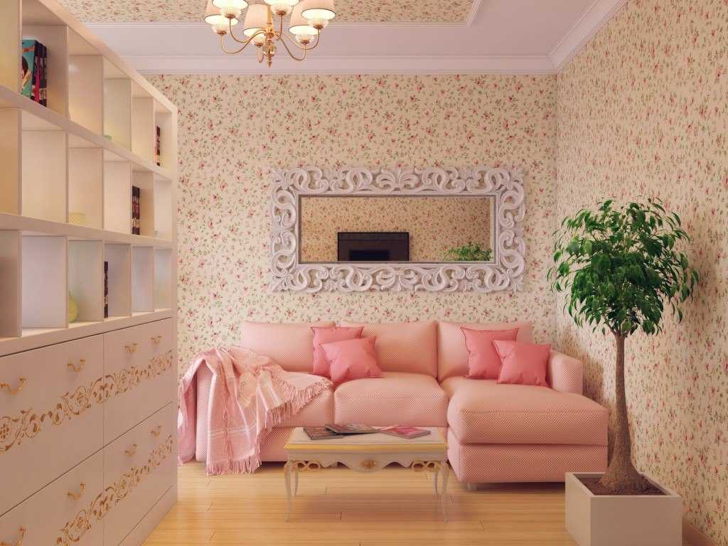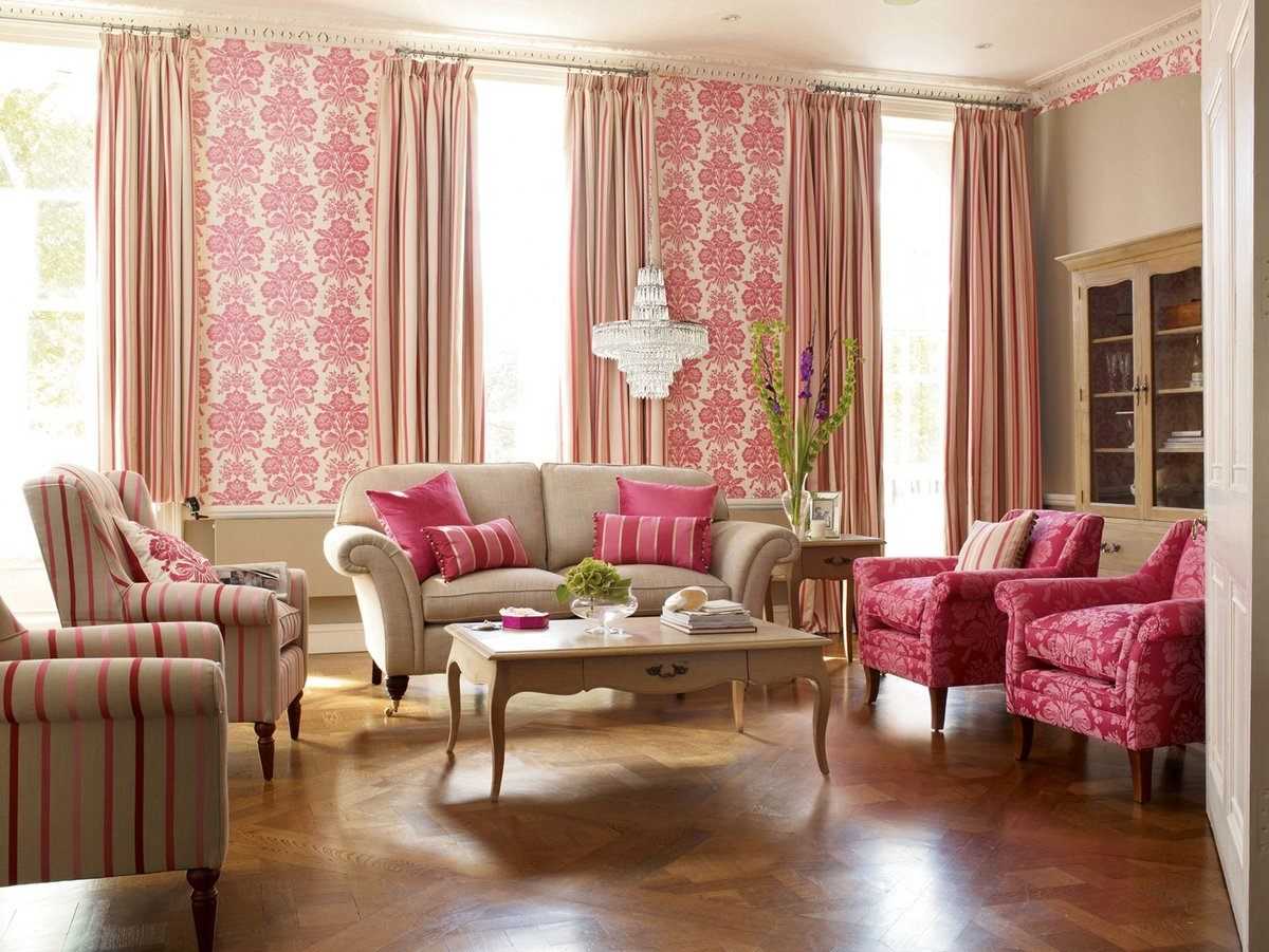 Это совершенно другое, когда вы выбираете интерьер гостиной в стиле гламур. Данный дизайн требует интенсивных цветов, поэтому можете успешно сочетать, например, стены цвета фуксии с мебелью и аксессуарами в розовом. Здесь также стоит использовать розовое золото, которое придаст интерьеру еще более роскошное оформление. Зеркальные рамы, подсвечники или светильники могут быть металлическими, не забудьте про декоративные подушки. Текстиль из розового золота должен максимально сиять и напоминать драгоценный металл, поэтому выбирайте такие ткани, как парча, шелк, атлас или варианты расшитые пайетками.