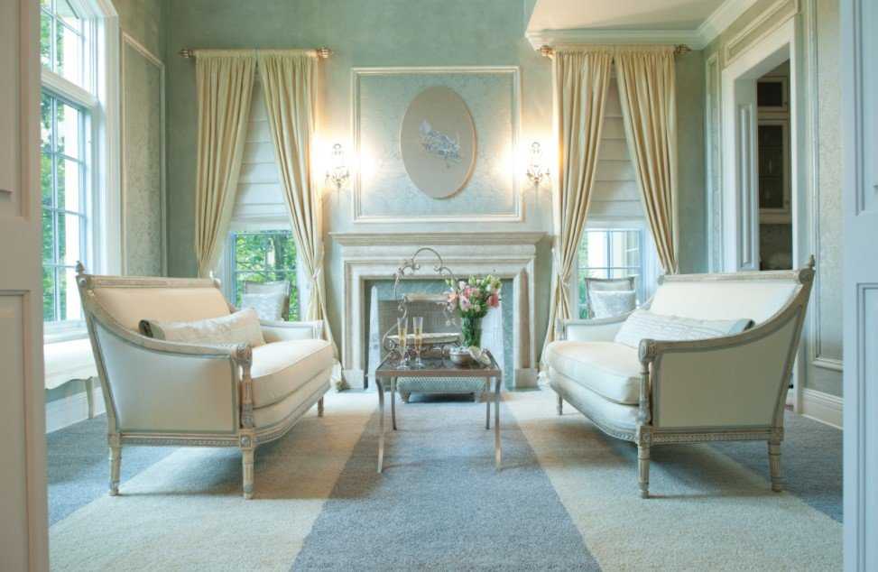 4. Смешение других красок к сирени придаст особый шарм всему помещению. Добавив лиловый или насыщенный пурпурный цвет, гостиная станет торжественной, такие интерьеры использовались в прошлых веках аристократами. Светло-голубые оттенки часто применяются для создания роскоши дворцов, создания гламурной атмосферы. Серый цвет, став парой к сиреневому оттенку, можно использовать для эклектики.