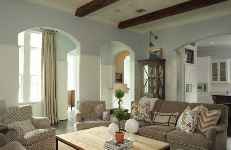 Однако очень важно, чтобы текстильные предметы были качественными и приятными. Наиболее подходящие варианты – лен или хлопок. Они органично впишутся в общий стиль гостиной