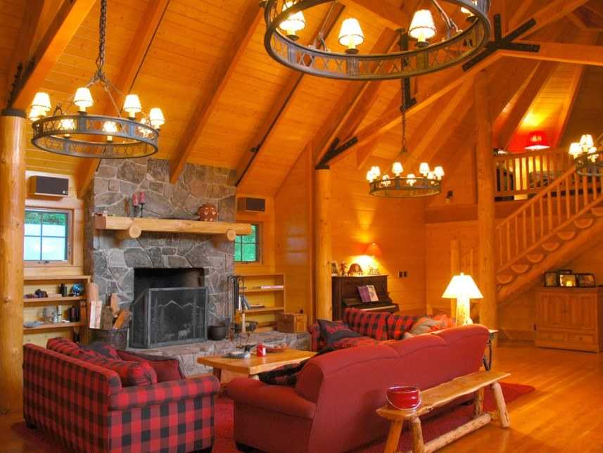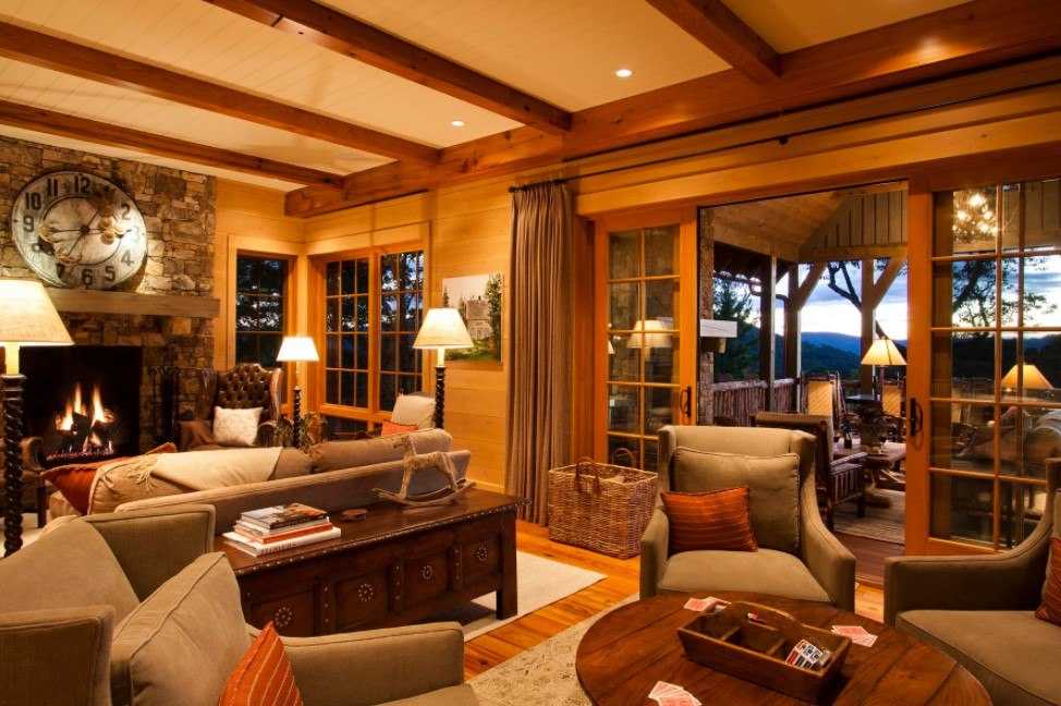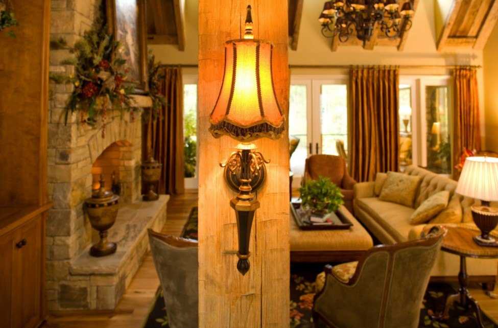 Искусственное освещение представлено простыми светильниками в кованом каркасе, подвесными лампами, настенными бра, напольными торшерами. Единственное условие – они должны быть простыми, без вычурных элементов.