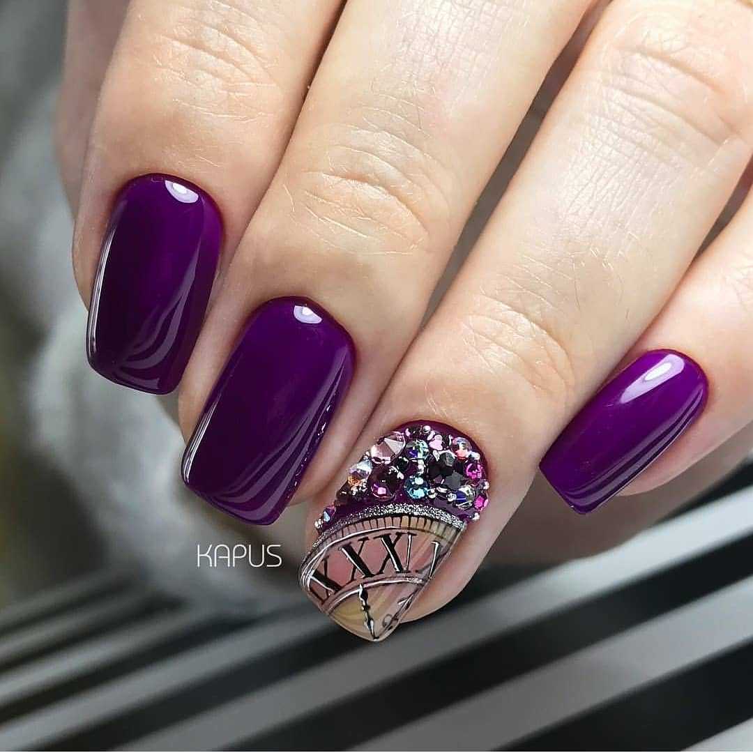 фиолетовый цвет требует тщательной предварительной подготовки ногтевых пластин, поэтому перед нанесением лака тщательно отшлифуйте поверхность ноготков