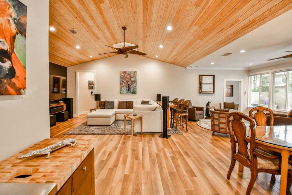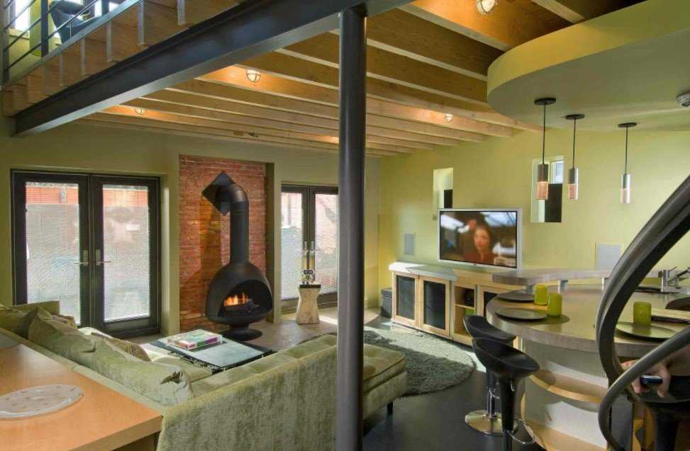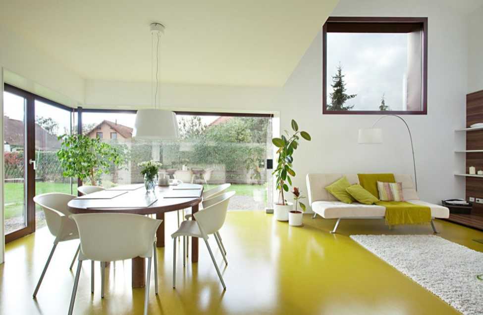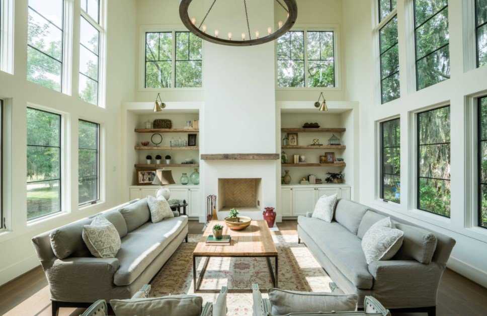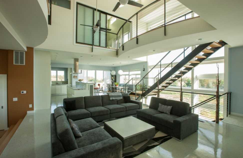 В модерне важно естественное освещение. Большие окна с обилием дневного света – нередкое явление