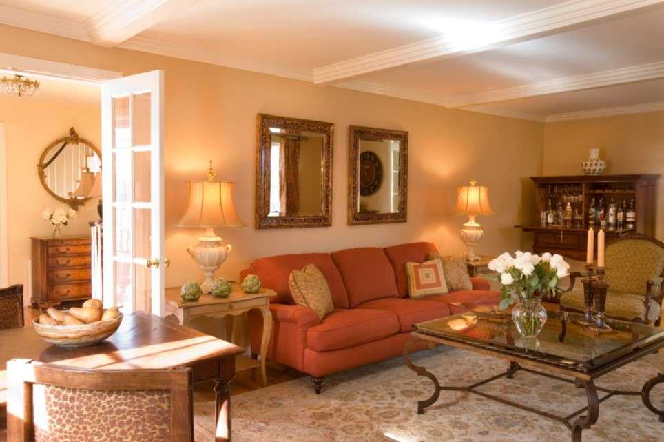 Бежево-оранжевая гостиная