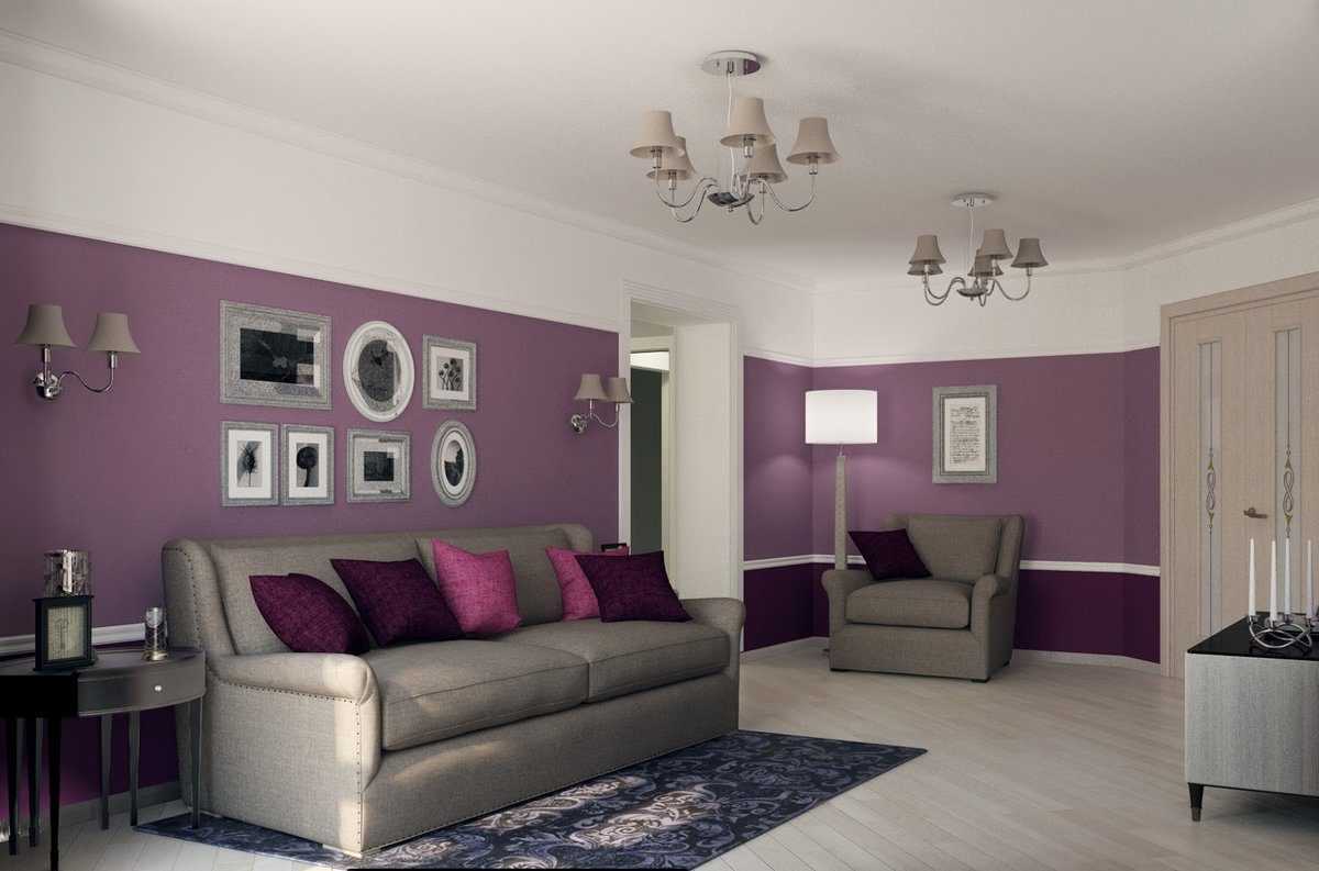 Стильная сиреневая гостиная: правила выбора аксессуаров