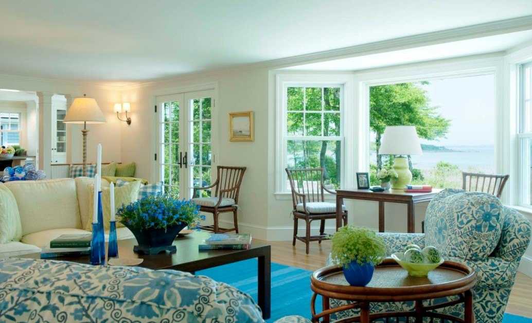 - Гостиную, выходящую на юг, нужно оформить более холодными лавандовыми оттенками. Для усиления ощущения прохлады можно добавить тона синего и голубого. Жара летом не будет так сильно ощущаться.