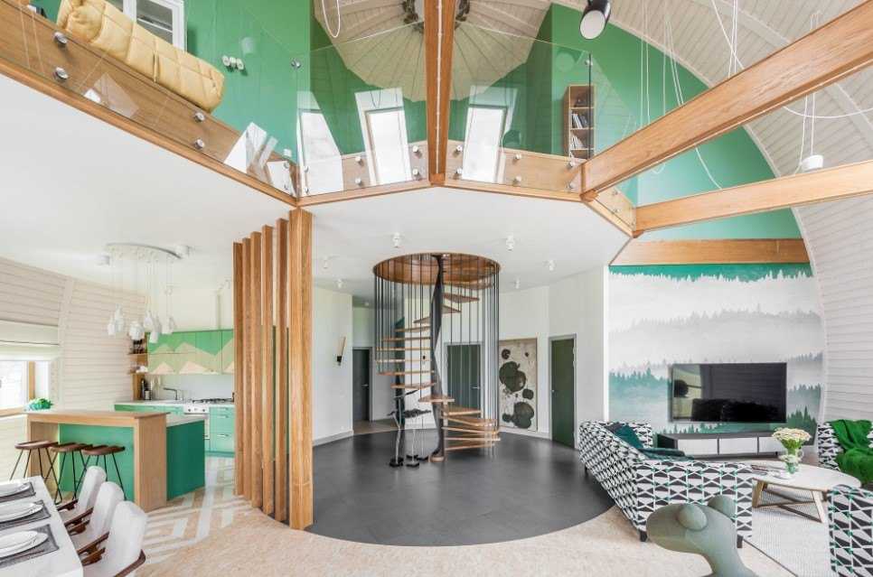 Как мы уже говорили, интерьер гостиной, выполненный в зелёных тонах, хоть и не пользуется мега популярностью, никогда не будет выглядеть банально, ведь всевозможные вариации зелёного всегда смотрятся свежо и обновлено, даже если речь идёт о белее глубоких оттенках