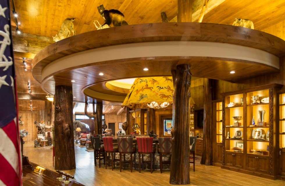 Всевозможные узоры гармонично выразят характер готического интерьера. Для полного вхождения зала в образ, внутренние части шкафов обрамляются бардовым текстилем.