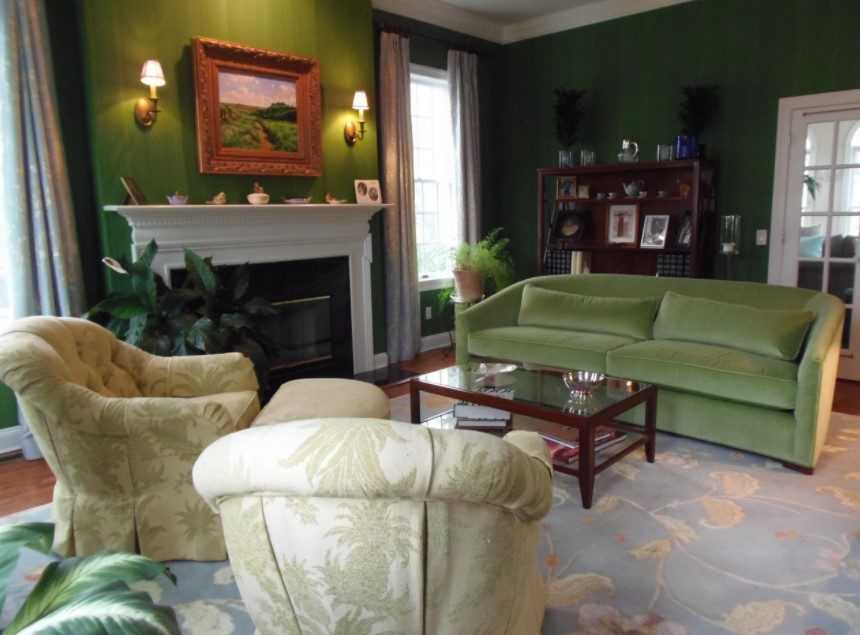 Зелёная гостиная: стилевые решения