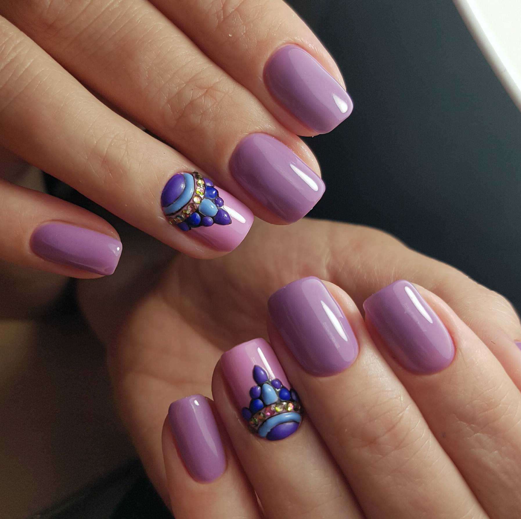 стоит аккуратно делать маникюр в сиреневом цвете, ведь любые несовершенства будут сразу бросаться в глаза