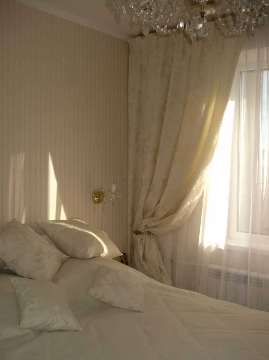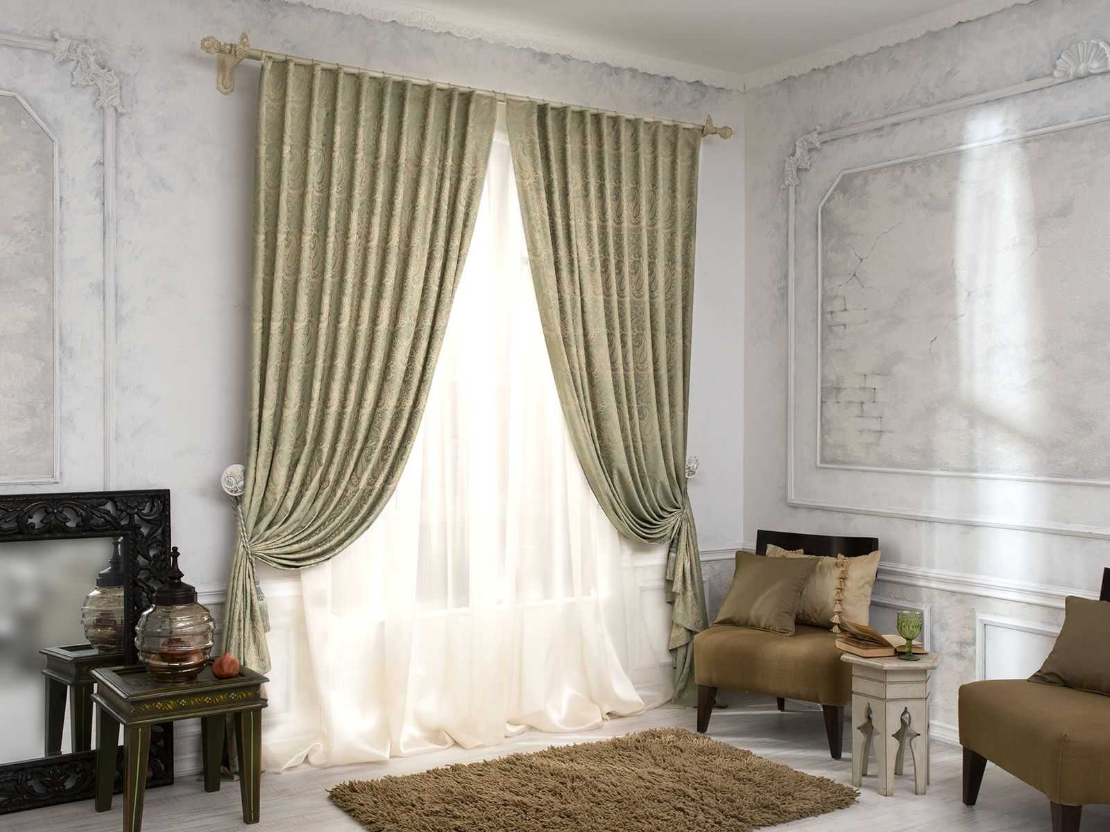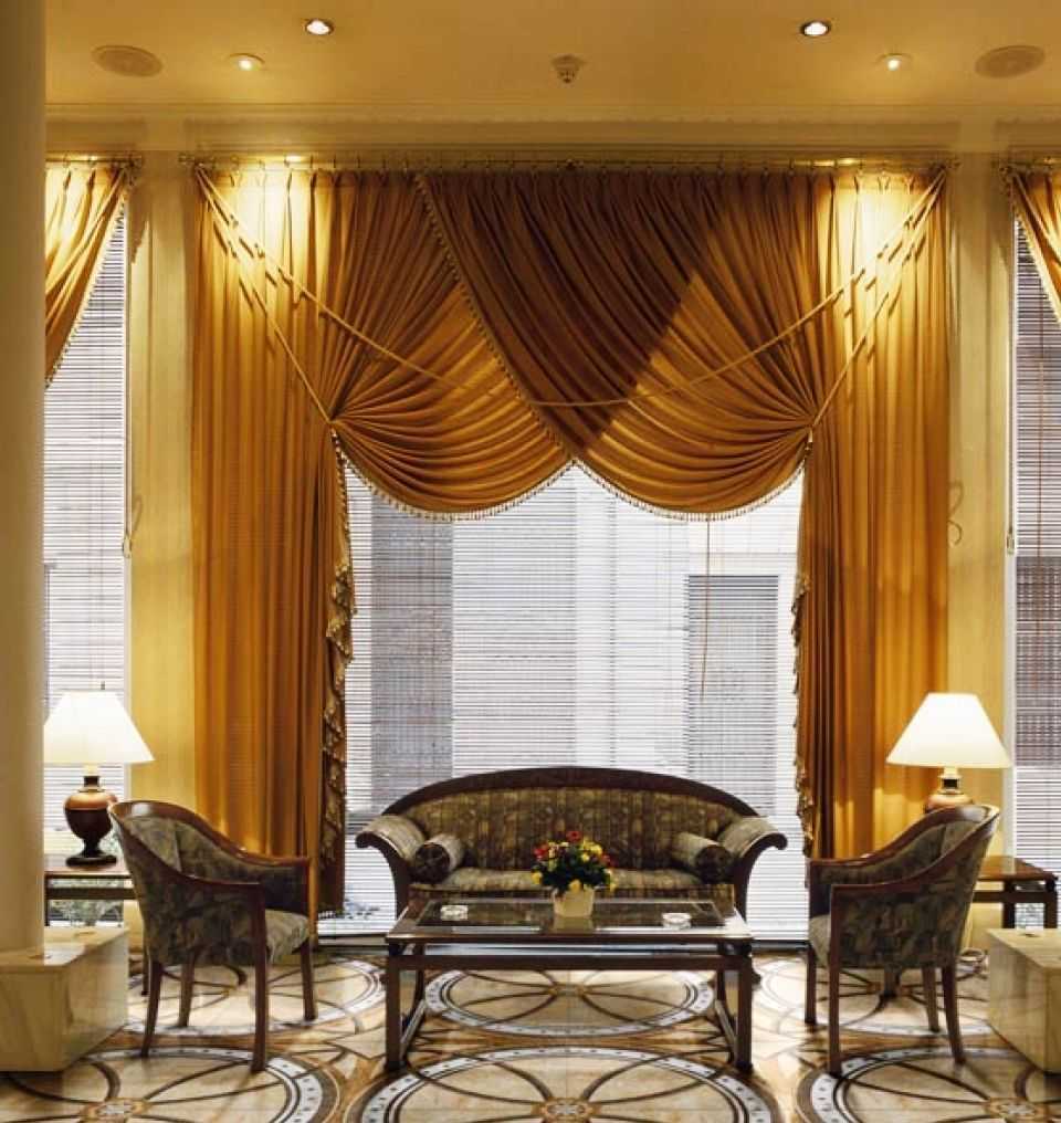 В классическом интерьере хорошо будут смотреться плотные портьеры, но декорировать ими желательно комнаты с большой площадью. В небольших комнатах лучше использовать шторы из легких тканей, собранных при помощи лент.