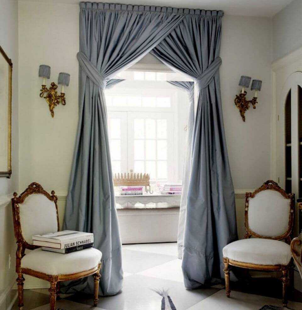 Французские шторы шьют из атласа, шелка или полиэстера. Хорошо подойдут для большого помещения с большими арками. Придадут помещению серьезности и респектабельности.