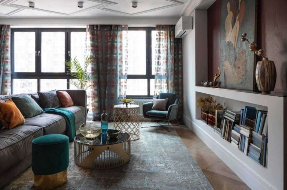 Зеркальные вставки и светлые тона мебели впишутся в маленькие комнатки. Зрительно увеличит зал верх из блестящего металла. В детской комнате будет уместным выбрать экологический материал ярких оттенков.