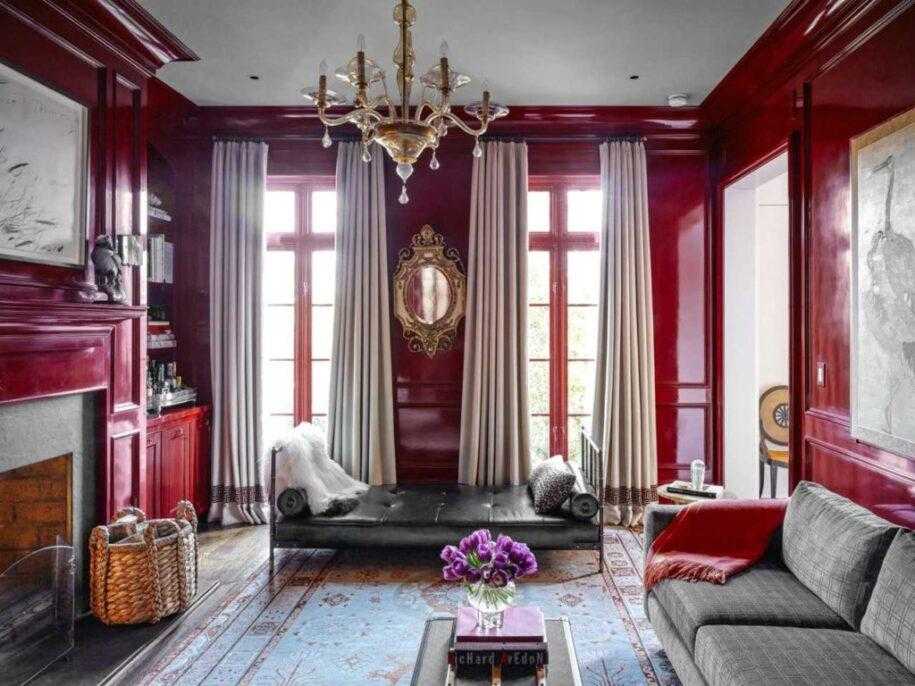 Не рекомендуется использовать темный оттенок красного на всех стенах, так как этот цвет может доминировать и подавлять всю комнату. По этой причине рекомендуется покрыть один сегмент комнаты — это может быть одна стена или отдельный модуль — бордовым, чтобы остальные можно было окрасить в более светлый, нежный цвет.