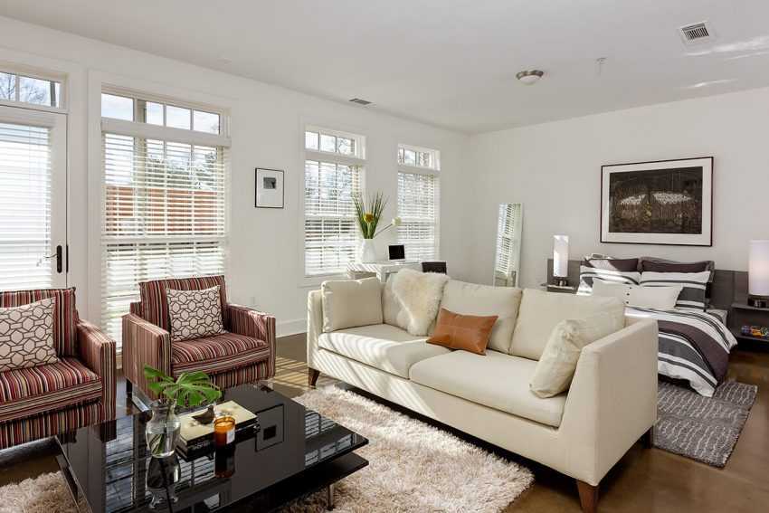 Экономия пространства: интерьер комнаты 17 кв. м, прямоугольная гостиная-спальня